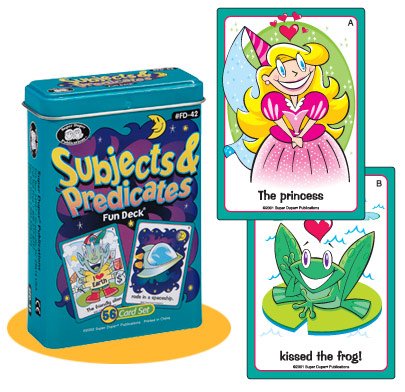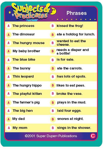 Η διασκεδαστική συλλογή καρτών "Υποκείμενα και Κατηγορούμενα" (Subjects and Predicates) περιέχει ατελείωτες δραστηριότητες για να εργαστείτε πάνω στην αύξηση της διάρκειας εκφοράς, την χρήση άρθρων και συνδέσμων και τις δεξιότητες αντίληψης.