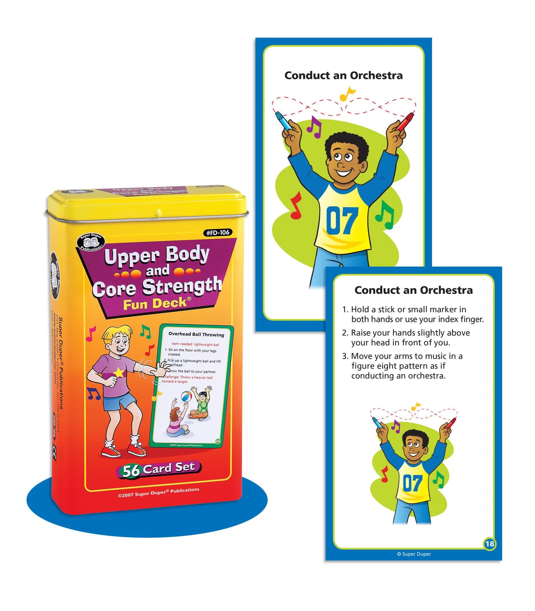 Χρησιμοποιήστε τις Κάρτες Κίνησης Κορμού “Upper Body and Core Strength” για να διδάξετε την ελεγχόμενη χρήση και τη σταθερότητα κορμού, ώμων, αγκώνων, καρπών, χεριών και δακτύλων.