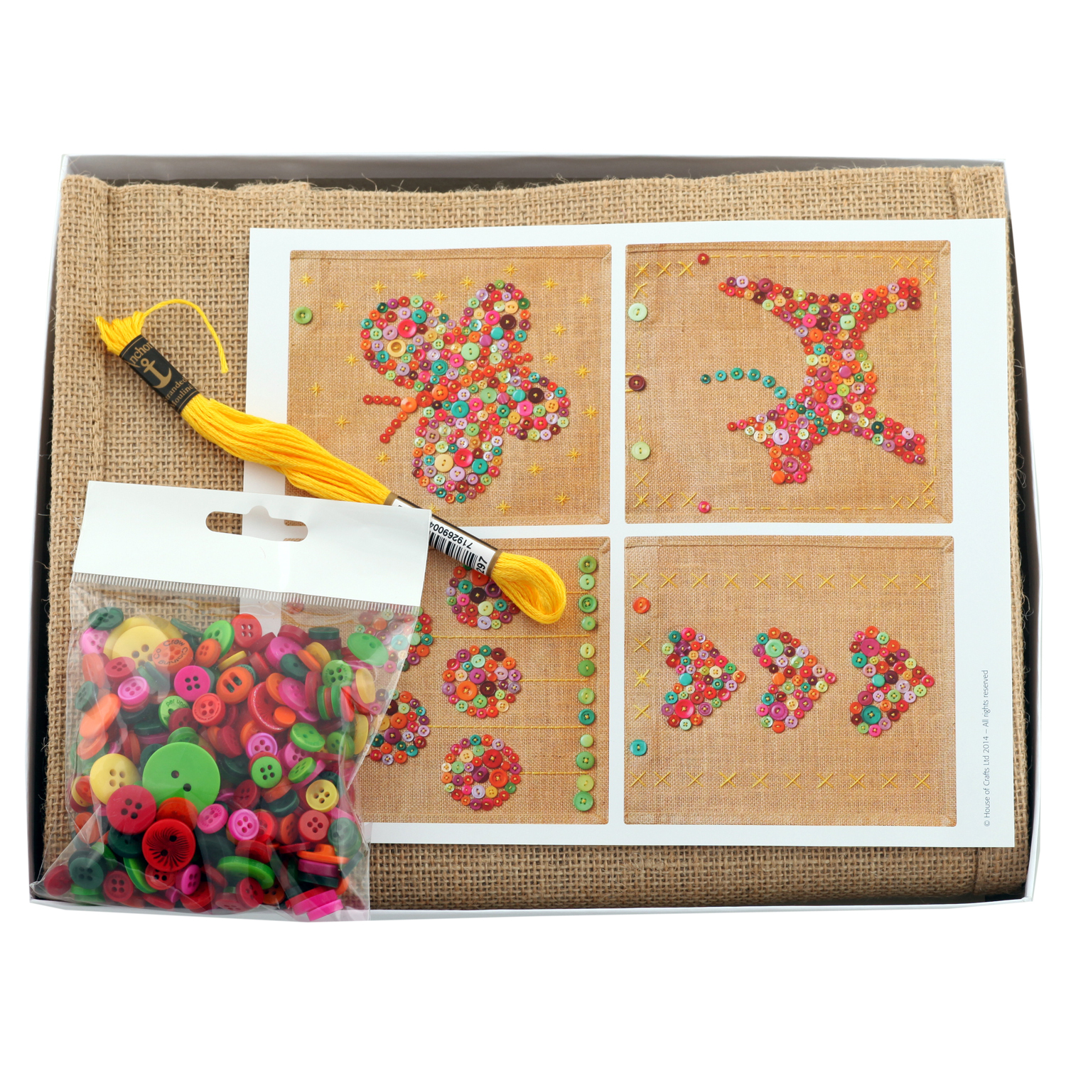Τα κουμπιά χρησιμοποιούνται εδώ και αιώνες για τη διακόσμηση και τη διαμόρφωση της μόδας. Αυτό το σετ περιέχει μια εξαιρετική συλλογή από πολύχρωμα κουμπιά για να δημιουργήσετε μια μοναδική τσάντα διαλέγοντας ανάμεσα από τέσσερα μοντέρνα σχέδια που μπορείτε να φτιάξετε με βελόνα και κλωστή.