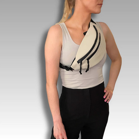 The main compartment can be closed with a zipper on top. There are additional storage compartments with a zipper on the front and back and inside the main compartment. Handy for mobile phones, travel documents and keys. You can wear this bag over your shoulder or crossbody thanks to the adjustable shoulder strap.